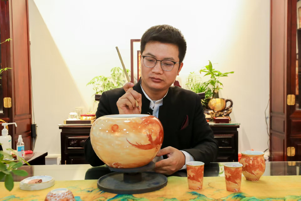 以(yi)工(gong)筆釉上(shang)彩瓷見長,功底深厚(hou)技藝(yi)精湛,作品(pin)兼具(ju)收(shou)藏價值(zhi)與市場認(ren)可度。